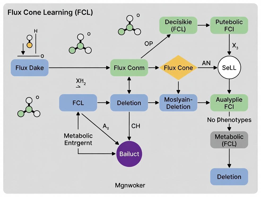 | Flux Cone Learning (FCL) | Integration of flux cone sampling with genomic features | 0.89 | 0.81 | Captures metabolic network constraints and context |