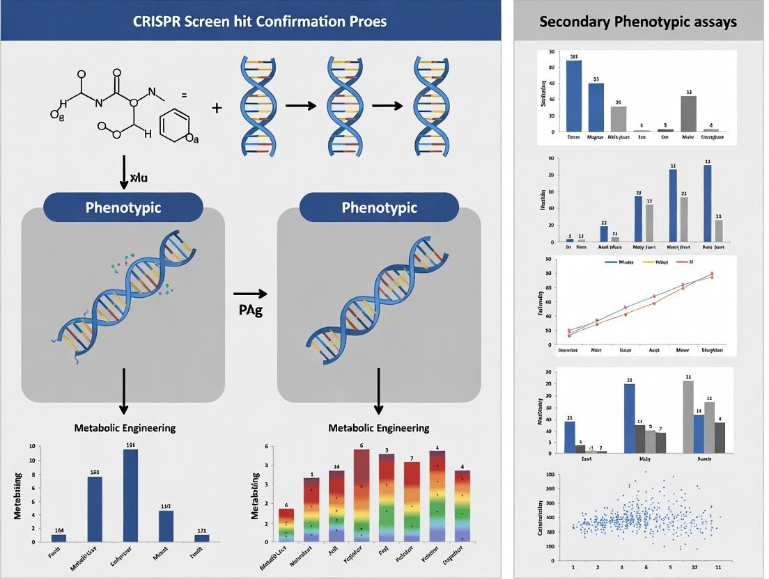 Effective confirmation of CRISPR screen hits through secondary phenotypic assays is a critical, multi-stage process that transforms high-throughput genetic data into biologically and therapeutically actionable insights. A successful strategy requires a solid foundational understanding of screen limitations, a carefully selected methodological toolkit tailored to the biological question, proactive troubleshooting to ensure robustness, and rigorous comparative validation to establish confidence and translational relevance. By systematically implementing this framework, researchers can decisively prioritize the most promising targets, de-risk downstream development, and accelerate the pipeline from genetic discovery to potential clinical impact. Future directions will increasingly involve integrating multiplexed phenotypic readouts, leveraging AI/ML for phenotypic analysis, and embedding validation workflows earlier in screening paradigms to enhance efficiency and predictive power.