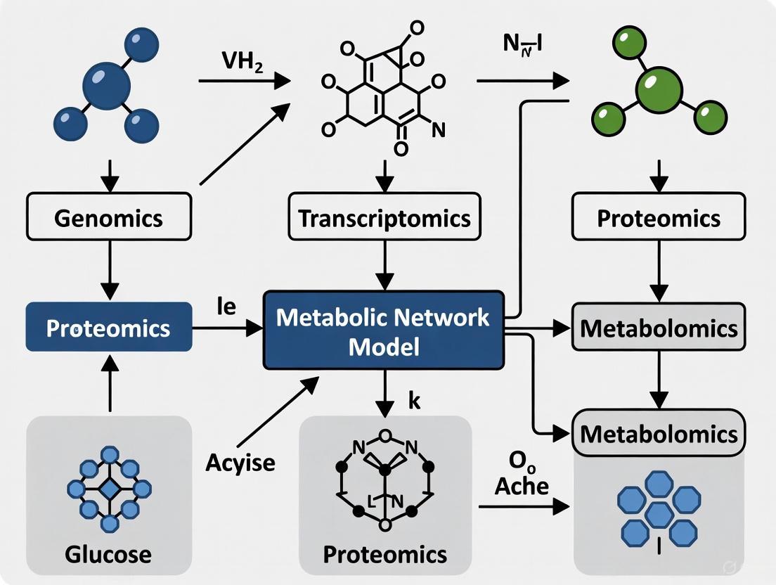 The integration of multi-omics data within metabolic network modeling presents unique challenges and opportunities. Metabolic models provide a structured framework for understanding how genetic and environmental factors influence metabolic phenotypes, making them particularly amenable to network-based integration approaches [111].