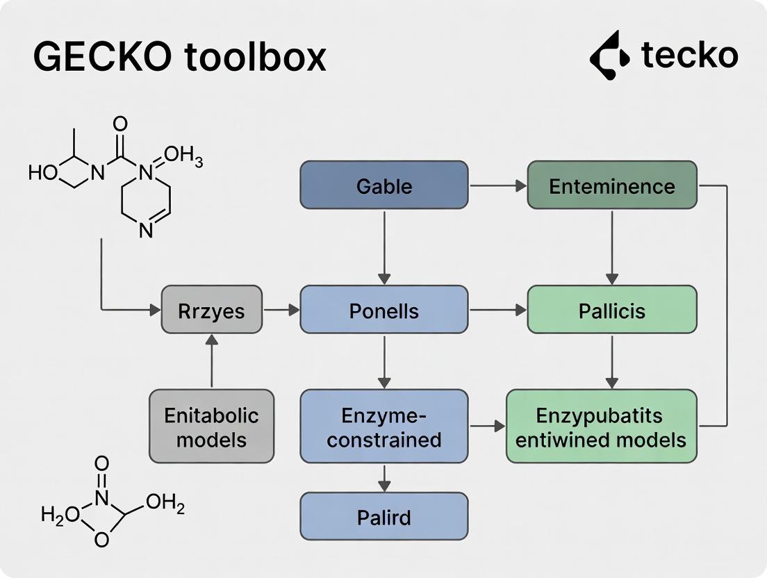 The GECKO toolbox represents a paradigm shift in metabolic modeling, moving beyond stoichiometric constraints to incorporate the fundamental limitations imposed by enzyme kinetics and abundance. Through the foundational understanding, methodological application, troubleshooting, and validation strategies outlined, researchers can harness GECKO to build more physiologically accurate models. This enhanced predictive power is pivotal for advancing biomedical research, from engineering microbial cell factories to deciphering the metabolic vulnerabilities of cancer cells. Future directions involve tighter integration of single-cell proteomics, dynamic kinetic parameters, and multi-tissue models, promising to unlock personalized metabolic diagnostics and more effective, mechanism-based therapeutic strategies. Mastering GECKO is thus not just a technical exercise but a critical step towards a more quantitative and predictive systems biology.